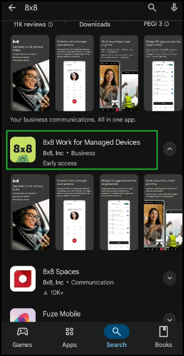 - Uninstall the consumer version of 8x8 Work for Mobile.