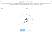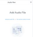 - Select from the existing audio files or click +Create Audio Files and select Upload an audio file. Or, click Call a phone number to record and skip to Step 6.