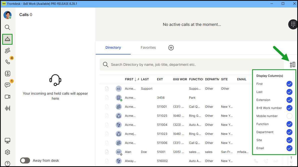 Enhanced Column Customization in 8x8 Frontdesk