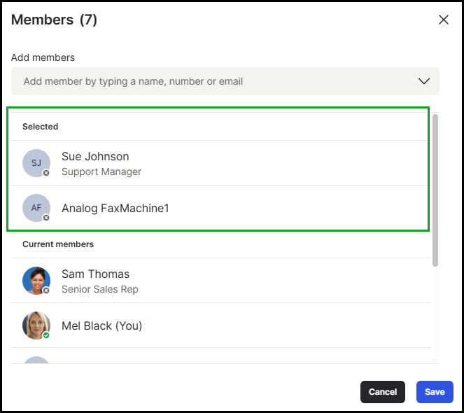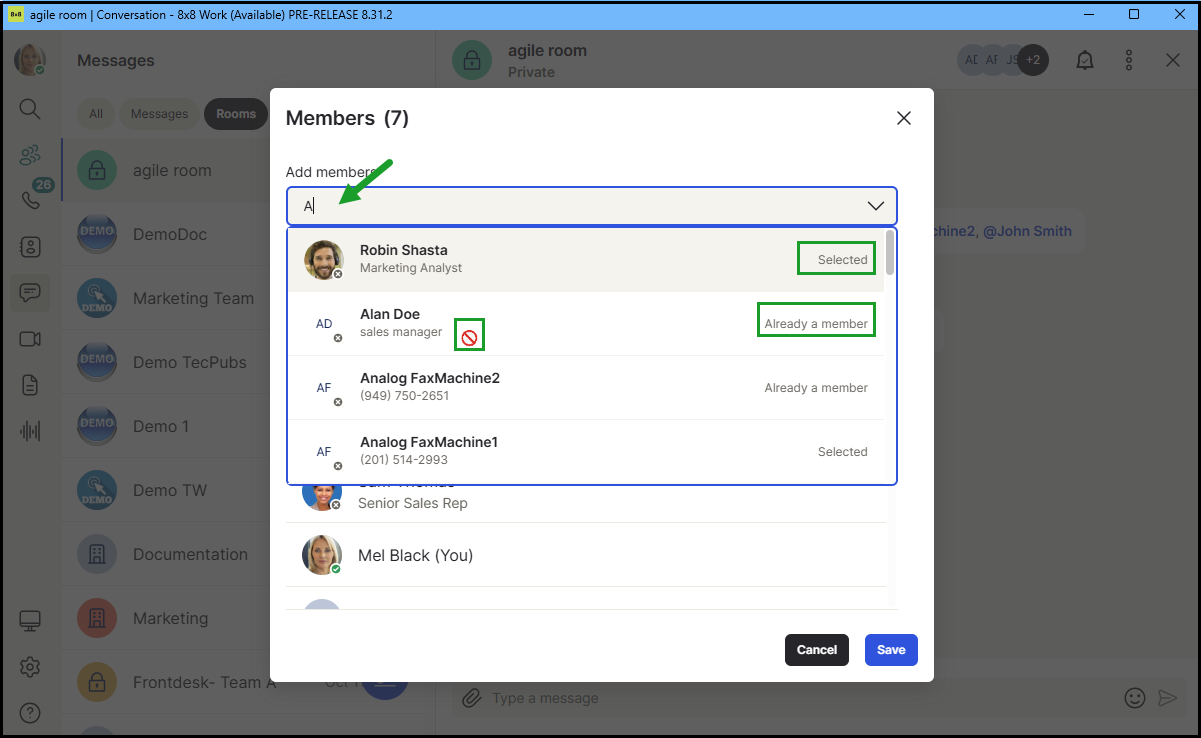 Adding members to private rooms is now clearer and more intuitive. The Add members dialog provides improved visibility into membership status, helping prevent duplicate additions.