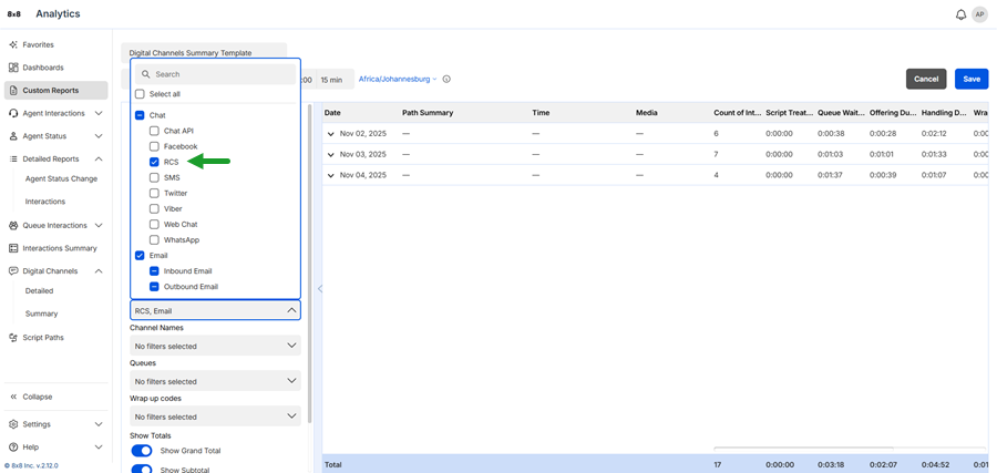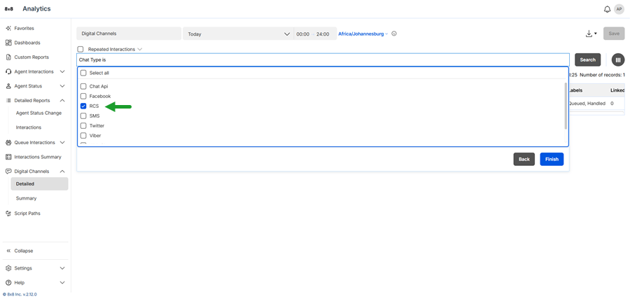 You can now filter inbound Rich Communication Services (RCS) in 8x8 Analytics for Contact Center. This new filter allows you to track and analyze inbound RCS traffic separately from other messaging channels.