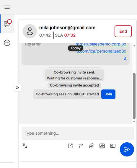 - Click End session to disconnect from the Co-browsing session with the agent.