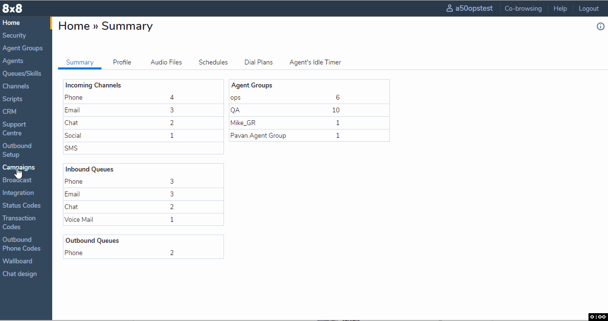 - Log in to 8x8 Configuration Manager and go to Campaigns.