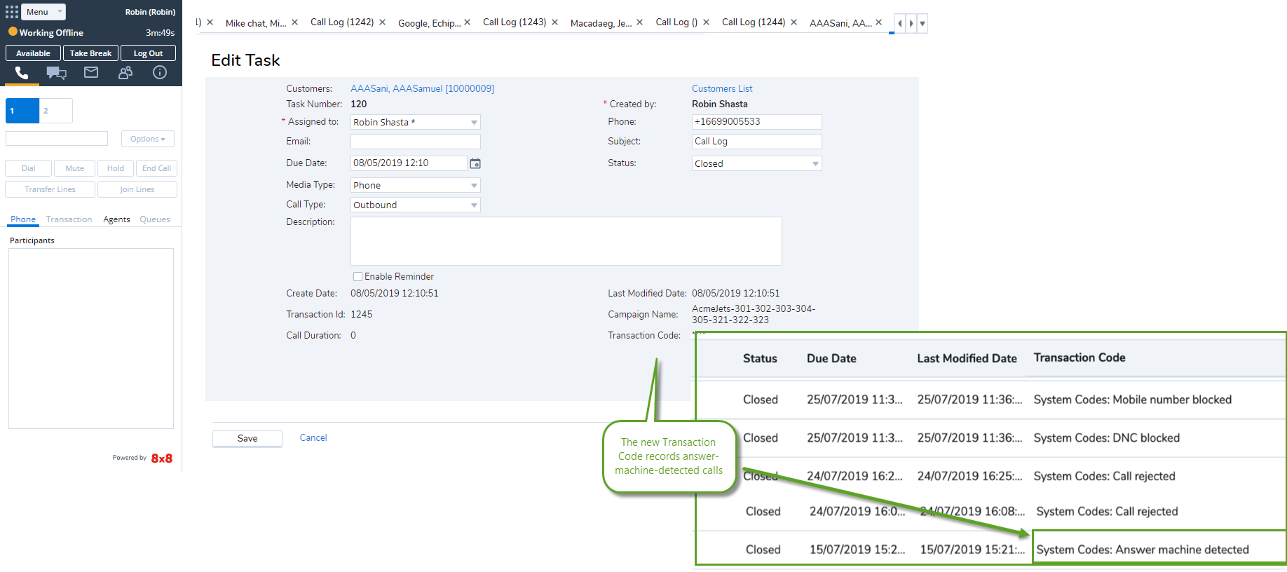AMD works in conjunction with our new Auto-TCL. The transaction code for such calls appears as "Answer machine detected" in CRM Cases or under Historical reports.