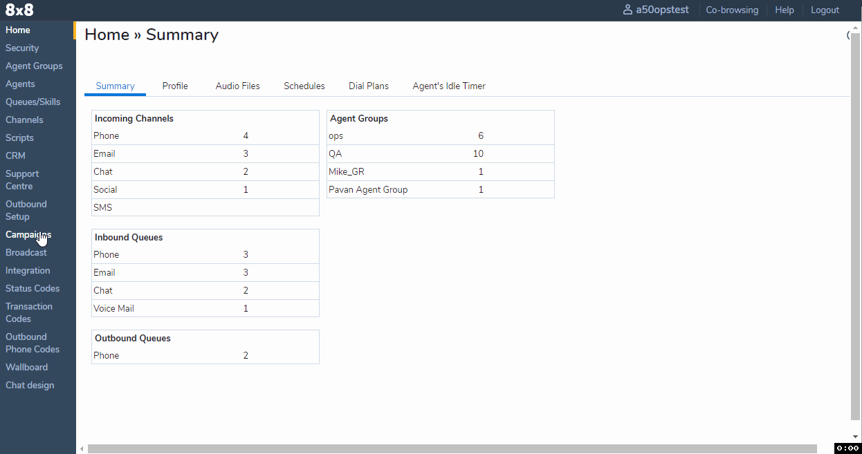 - Log in to 8x8 Configuration Manager and go to Campaigns.