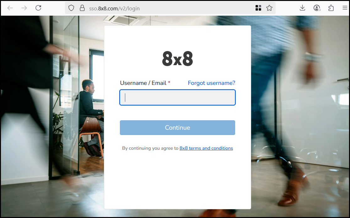 2. In the 8x8 login page, enter your username or email and click Continue.