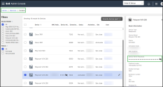 More information is presented such as MAC address, device admin password, extension number, status, activation code, site, and the user who is associated with the device. You can filter your view by Device Model or activation Status. Clicking the header row allows you to sort the results alphabetically. - In the Devices > Details page, click a device on the list to open the device's Info Panel. The device information such as device model appears on the right. The device model information specially helps when selecting a DECT base or an ATA terminal.