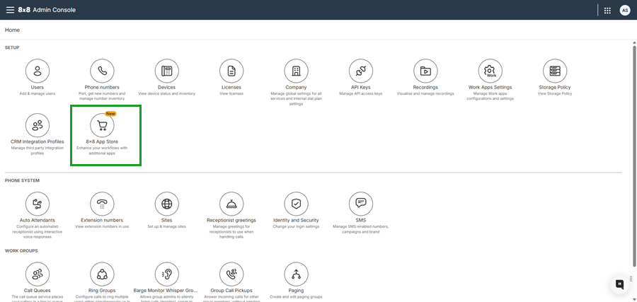 2. Go to Home > 8x8 App Store.