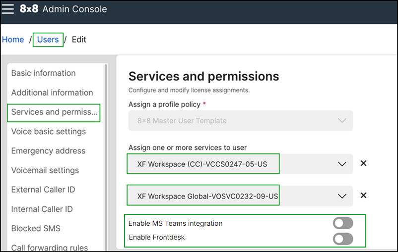 To learn more about configuring an XF Workspace user accounts, see 8x8 XF Workspace for admins.