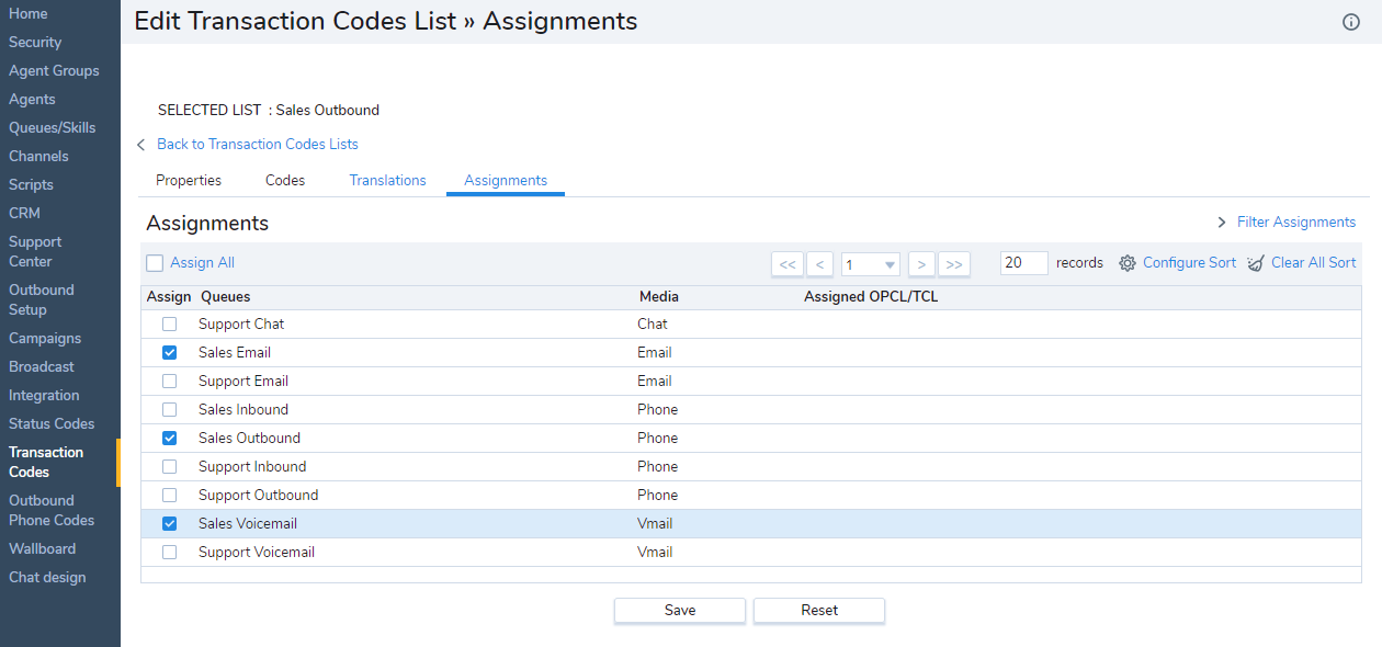 Cochez la case Tout affecter pour affecter tous les groupes ou toutes les files d’attente de la liste. - Cliquez sur Enregistrer pour terminer la définition de la liste de codes.