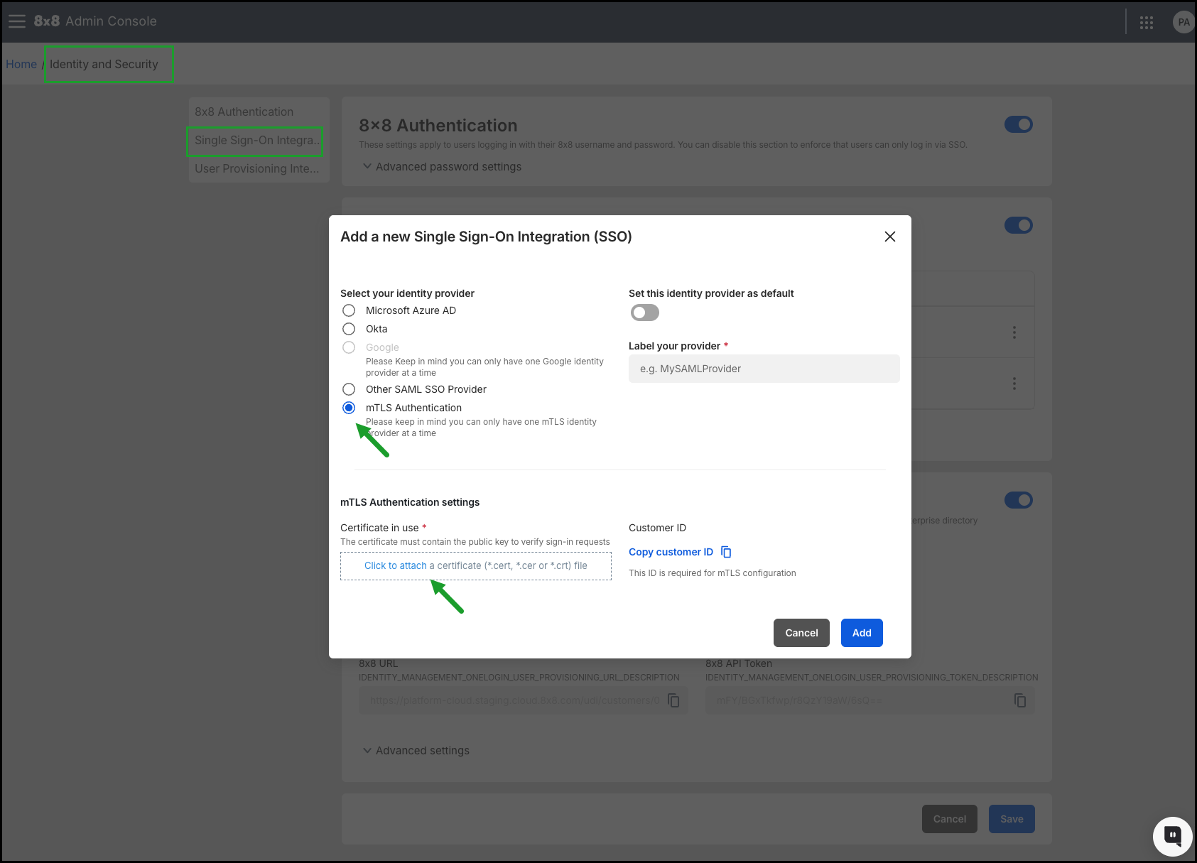 Note: Only one mTLS identity provider can be configured per 8x8 account.