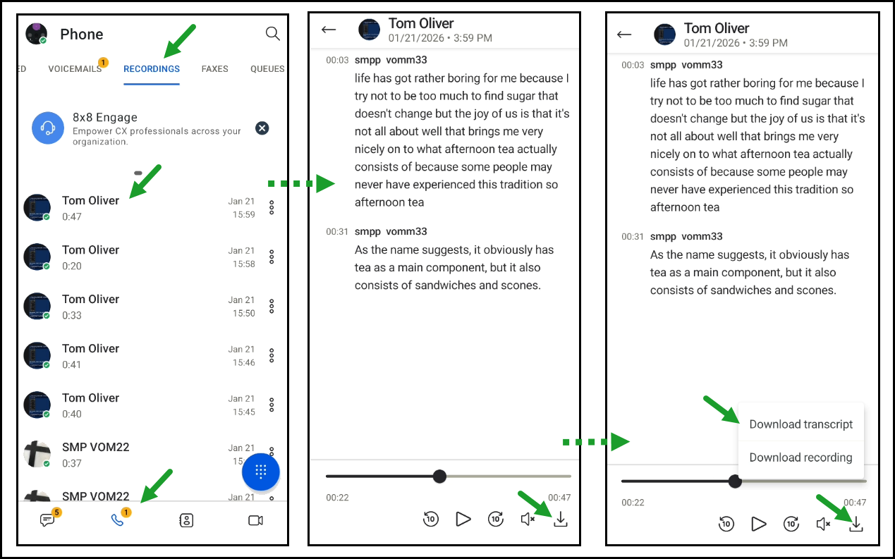 You can now view and download transcriptions of recorded calls directly in the mobile app. This feature improves accessibility and enables faster, quieter review of call content—no need to play the recording.