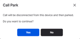 - Confirm the prompt to disconnect the call and park it for later retrieval.
