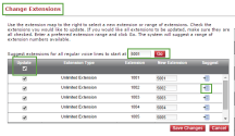- Enter an available number in the New Extension column, or click the Suggest icon to see the next available extension number in the same range.