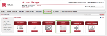 The contact directory is an online directory for users to view their contacts and see who is online and available. Information used by the contact directory is pulled from user profiles that are created and maintained by your phone system administrator in your system’s Account Manager.